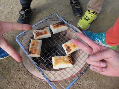 5・6時間目に社会科の学習で七輪体験をしました。七輪を使うことが初めてだった子ども達は,理科の時間にヒントをもらい,どのような順番で火をつけたらいいのか考えながら活動していました。火がついた!と思えば,炭に火がうつらず…うちわであおいで,あおいで…やっとの思いでついた火でおもちを焼いたり,マシュマロを焼いて美味しくいただきました。「昔の人はこんな苦労をしていたのか!」「今日焼いたおもちは今まで食べてきたものよりも美味しく感じた」とそれぞれに今日の体験をふりかえっていました。