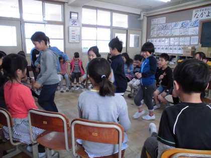今日は,3年生はじまってからはじめてのみんな遊びをしました。昨日の雨で運動場は使えませんでしたが,教室で「なんでもバスケット」をしました。みんな楽しそうにお題を言っていました。