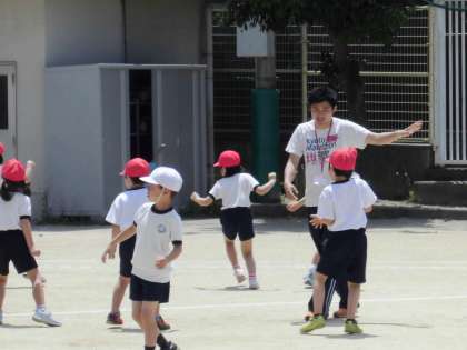 音楽や周りの友達の動きに合わせて動くということは,なかなか難しいところもありますが,先生のアドバイスや友達の動きを見ながら,1・2年生のみんなと一緒に一生懸命取り組んでいます。