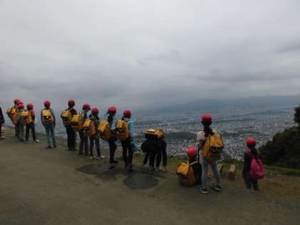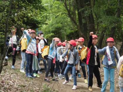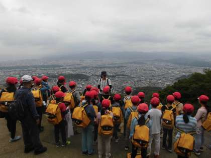 3年生は春の社会見学で大文字山登山に挑戦しました。登っている途中に,どこからともなく「がんばれー!」「もうちょっと!」と励ます声が聞こえたり,運動会の応援合戦を山道でしていました。到着点に着くと,大文字山から京都市の様子がよく見渡すことができました。午後からはあいにくのお天気となりましたが,山道を降りる時に「ここすべりやすいで。」「気つけや。」という声が聞こえてきました。力を合わせて1つのことを成し遂げることを学んだ子どもたちでした。