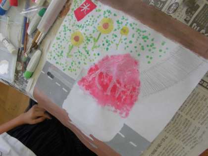 図工で取り組んできた稲荷大社の本宮祭で飾らせていただく行燈の絵が完成しました。