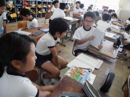 今日は式と計算の順序の3時間目で,めあては「計算の仕方を説明しよう。」でした。ノートを相手のほうに向けて,アイコンタクトを取りながら説明することができました。