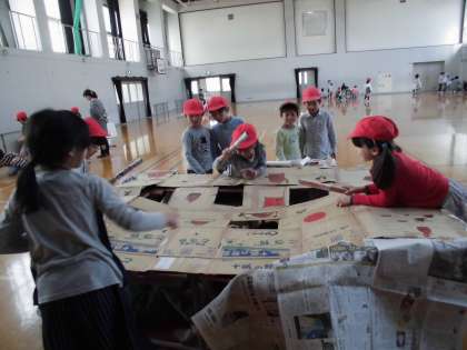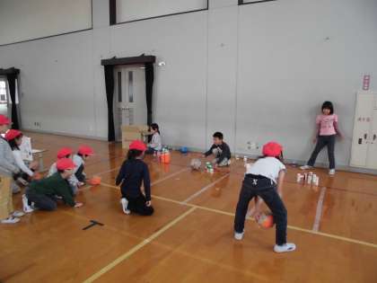 おもちゃやさんを開店してからの、子ども達は教室で毎日見ているときよりも、ずっとお兄さん、お姉さんの顔になっていました。うまく入らない1年生に「もうちょっとそっと投げたら入るよ。」「だいじょうぶ、ゆっくりやってみ。」「すごいやん。」などとっても温かい声かけを自然としてくれている子どもたちでした。