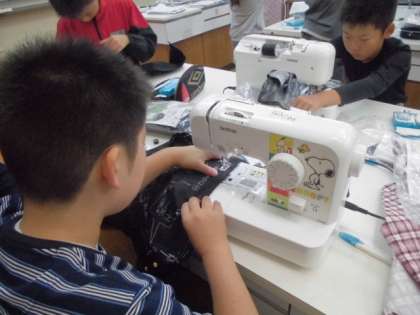 昨年度に一度,ミシンの学習はしていますが,1年ぶりということではじめは「あれ?どうやったっけ・・・」という感じでしたが,復習しながら,何度も糸を絡めながらがんばって進めてきました。