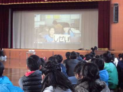 ○健康…給食食器等の返し方の確認と「目玉筋肉マン」の動画(視力低下につながる姿勢についての児童作ビデオ)