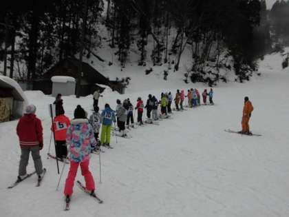 午前中は,山の家のインストラクターの指導の下,スキー練習しました。