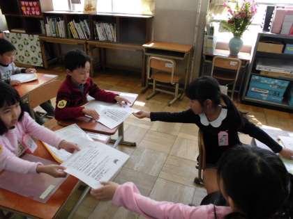 「おはようございます!」みんな元気な挨拶をして,教室に入ってきてくれました。早速今日は,かっこいい座り方,ランリックの片付け方,プリントの渡し方などたくさんのことを勉強しました。みんな張り切ってがんばってできていました。さあ,この調子でがんばろう!