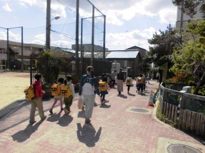 そして町毎に「こども110番」の家や危険個所などを確認しながら集団下校しました。