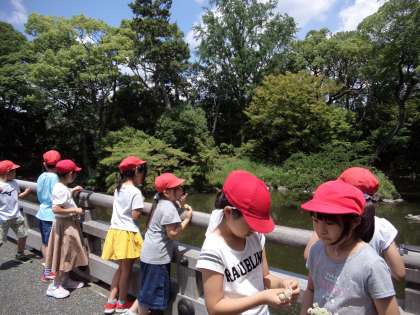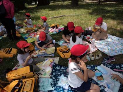 ご飯を食べた後は,シロツメクサで花冠を作ったり,