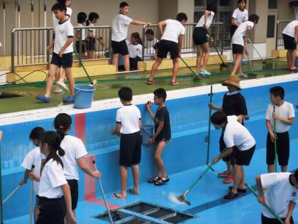 6月10日(月)午後5・6年生でプール掃除をしました。
