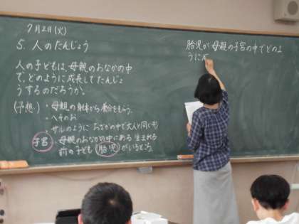 5年生の理科は,ヒトの誕生の学習に入りました。小さな命がどのようにして成長していくのか,命の始まりや成長する過程を学んでいきます。「メダカはたまごから生まれるけれどもヒトはたまごからは生まれない」「へその緒って聞いたことがある」など知っていることとつなげたり,前単元のメダカの誕生と比較して考えている子どももいました。