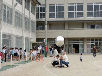 6日(土)に紙飛行機教室が開かれました。はじめは講師の方によるデモンストレーション。気球に載せて,30mの高さから様々な風に乗る折り紙が舞い降りたり,飛行機が飛ばされたりしました。