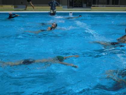 今日は最後に5,6年の男女混合チームでリレーをしました。「がんばれー!」という声援の中,泳ぎが苦手な人,得意な人関係なく楽しんでいました。