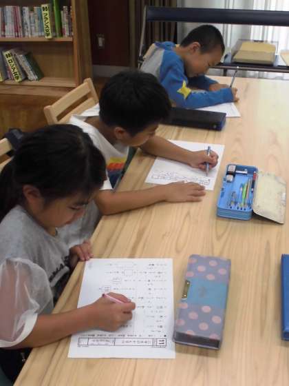 参加した子どもたちは,各自の目当てに基づいて計算や漢字プリントに向かいました。