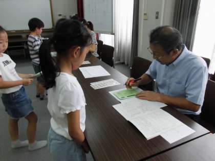 今日は,今年度最初の「ノート検定」がありました。算数のノートをみていただきました。学習の足跡がしっかり残せているでしょうか・・・子ども達は,ドキドキしながら,「お願いします。」とノートを差し出していました。全員合格でした!ピカピカの金のシールを貼ってもらい嬉しそうでした。2学期も頑張りましょう!!