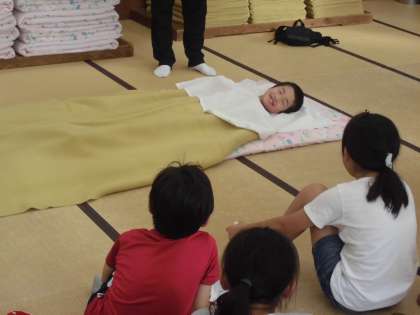 最後に,バンガローで寝るときの寝具準備の仕方の説明がありました。