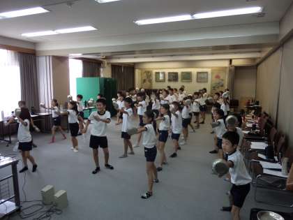 沖縄の踊り「エイサー」を3年生と一緒に元気よく取り組んでいます。