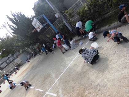 9月20日(金)8時25分〜8時40分,たてわりグループごとに運動場に落ちている石を拾ったり草ぬきをしたりしました。
