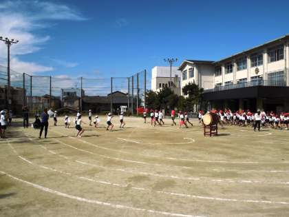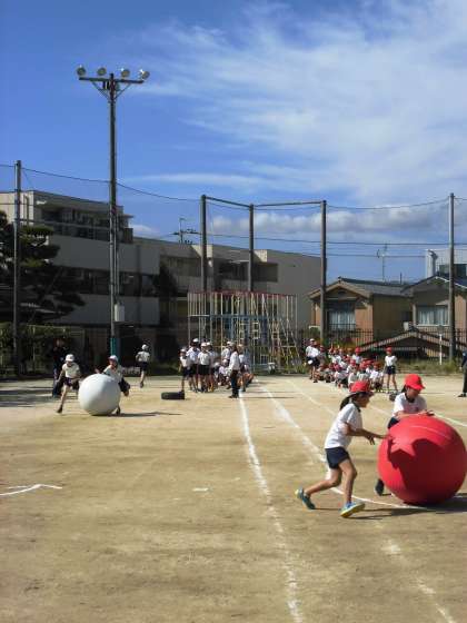 開・閉会式,全校ダンス,大玉送り,応援練習をしました。