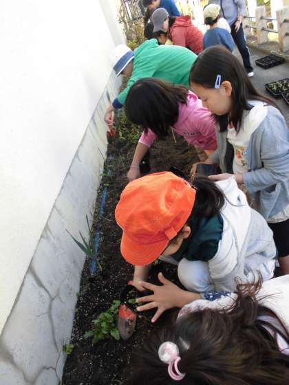 参加した子どもたちは,花の苗を学校周りの花壇に植えました。