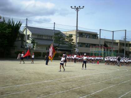 久しぶりのお天気のもと、4日の運動会に向けて1時間目から全校練習をしました。今日は入場・開会式・閉会式・全校ダンス・応援合戦の練習をしました。入場では、赤白できちんと一列になって行進しました。開会式では、司会の子どもたちがしっかりした進行ですすめてくれました。全校ダンスでは、係の子どもたちの演技を見ながら、みんなリズムよく楽しく踊りました。応援合戦では団長を中心に、赤勝て・白勝てと大きな声でがんばっていました。