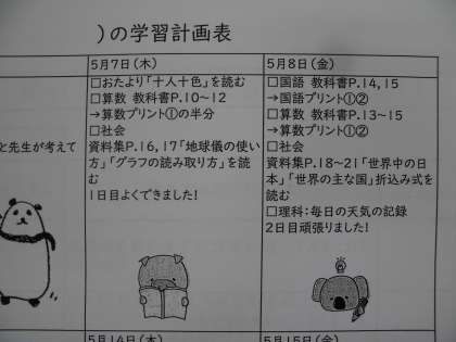 こんにちは!今日は新しい課題をお届けします。学校の休校は5月31日(日)までになりましたが,(おたよりには17日になっていますが,変更お願いします)今回くばった課題は17日までの分です。今日から学習計画表通り始めましょう。
