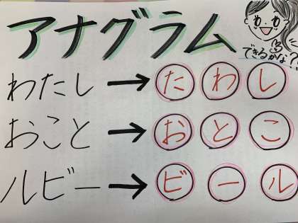 さて、この前の「アナグラム」の問題はとけましたか?こたえ合わせをしましょう。
