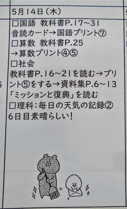 【今回の課題+漢字ドリル+保健の書類(まだの人)】