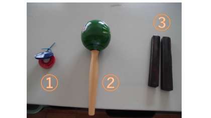 ア:1.タンブリン   2.マラカス   3.クラベス