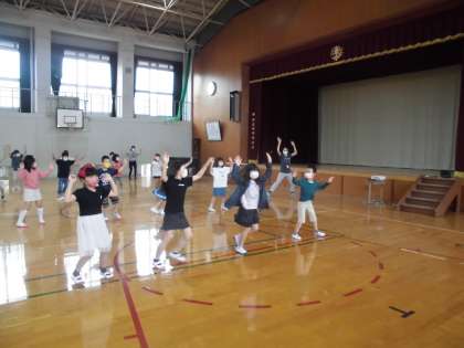 間をあけて,体育館でダンスを踊りました。