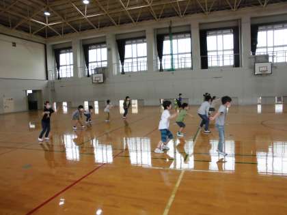 家での様子を聞いたり,ミニトマトの準備で土を入れたり,最後に1年生といっしょに体を動かしたりしていると,あっという間に時間が過ぎてしまいました。