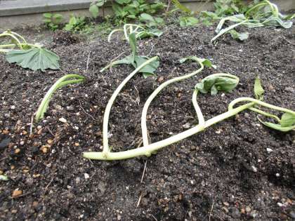 きのう2年生のはたけに,さつまいもの つるをうえました。あさがお・ちゅうりっぷは「たね」や「きゅうこん」でしたが,さつまいもは,しゃしんのように もう「くき」や「はっぱ」が出てきているものを こんなふうに,土の中にうえるんです。びっくりでしょう。