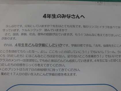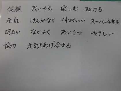この前 みなさんが書いてくれた学級目標をつなぎ合わせて
