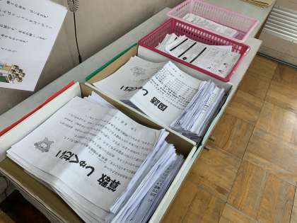 さあ,今日わたした 新しいしゅくだいは,今日からスタートです。こつこつがんばってくださいね。漢字れんしゅうのしゅくだいは,お手本のやり方をよく見て ていねいな字で書きましょう。先生も みんなの しゅくだいをじっくりと見ます。