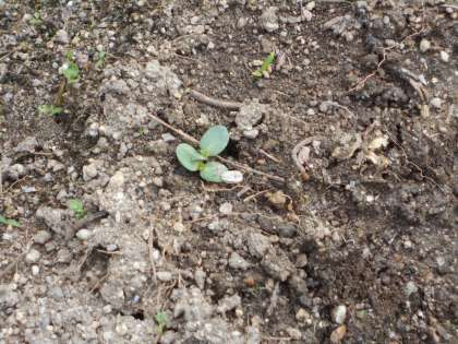 1週間前に たねを まいた ひまわりの めが 出ました。
