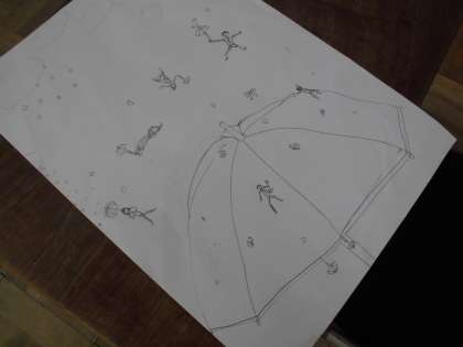 図工の「雨傘ファンタジー」の下絵が完成してきています。