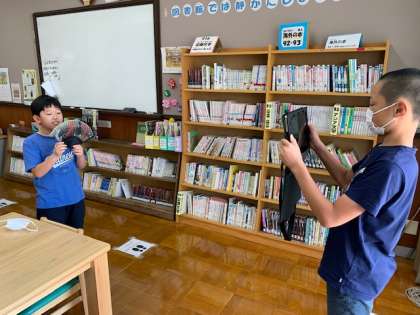 「伏見稲荷周辺の住みよいまちづくり会議」とコラボして総合的な学習の時間に取り組む,「いいよねいなり」。 コロナウィルスにより活気のなくなった稲荷の町を元気づけるために伏見稲荷に関係する著名人や地域の方のメッセージ動画を配信する計画に参加し,動画作成をしました。自分のおすすめスポットなどを考え,タブレットを操作して撮影。一度練習すると,「雑音がない方がいいね。」「どこで撮影するといいだろう?」「話し方はこれでいいの?」などなど,課題がどんどん子どもたちから出てきました。よし,出てきた課題を整理して撮りなおそう!…。企画を知った時には「え〜,ちょっと恥ずかしいかも…。」なんて人もいたようですが,やり始めるとかなり熱くなっています。子どもたちが話し合って,結局大切なのは『稲荷に興味を持っている人に,その魅力を伝えようという気持ち』ということにまとまり,やっぱり何事にも「相手意識」は大切なんだな,と私もみんなの姿から学ばせて頂きました。