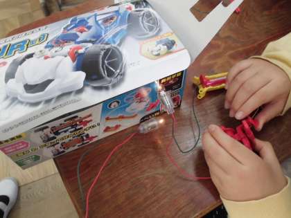 暗闇でみる豆電球の光にみんなは「きれいー!」と声をあげていました。