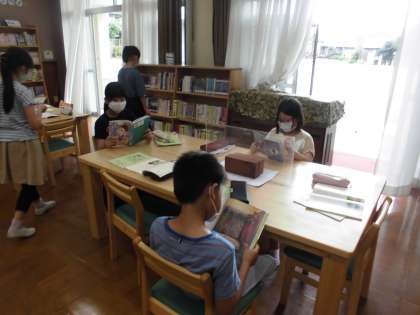 佐々木先生の話を聞いて,早速本を探している子どもたちでした。