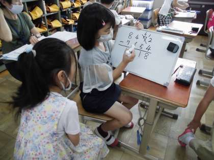 ペアで 筆算のしかたを 一人一人,説明し合いました。