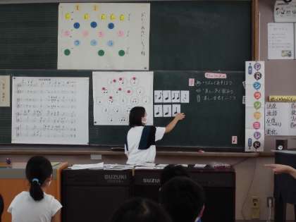 リコーダーでは,ドレミあみだを使って,オリジナルの旋律を作って,まねっこ遊びをした後に,「小さな約束」という曲を,上と下パートに分かれて演奏しました。ソのシャープも大分慣れてきて,きれいな音色で演奏できるようになってきました。