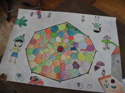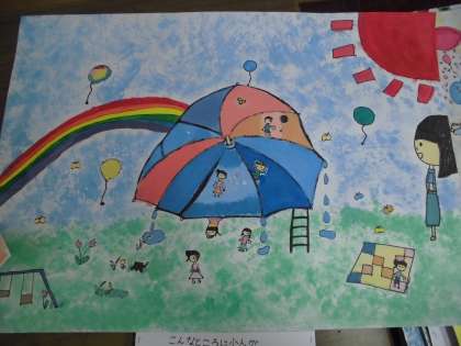 図工の時間に描いた雨傘ファンタジーが仕上がりました。