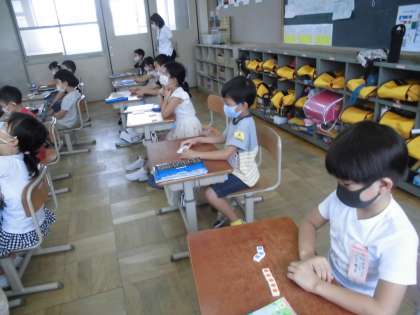 7月20日(月)の2時間目に,1年生に算数の授業を見に行きました。