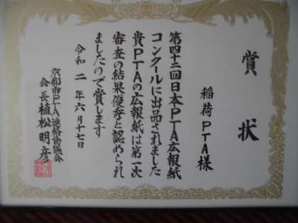 稲荷PTA広報紙が優秀賞に!