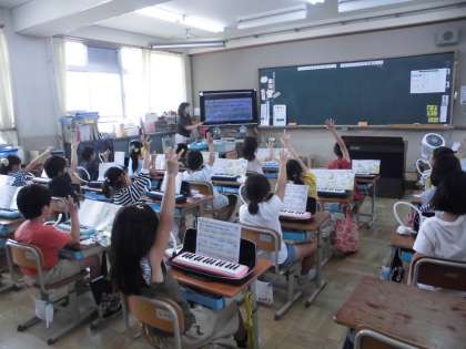 2年生は,音楽の鍵盤ハーモニカの練習をしていました。