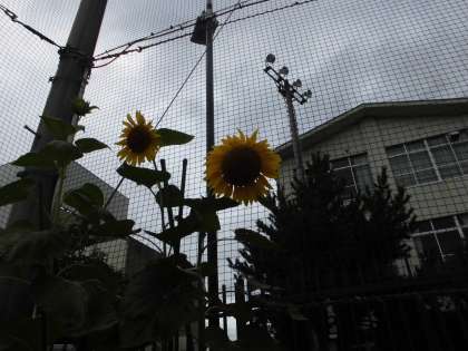 おとなりの3年生の畑では,大きな大きなひまわりが,こちらを見下ろしていました。