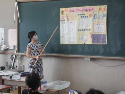 ちょうど,4年生が自由研究の発表をしていました。