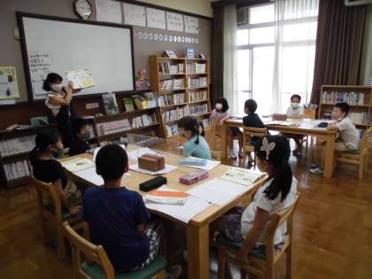 本で知ったことを 友だちとつたえ合うのが楽しみです。