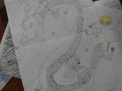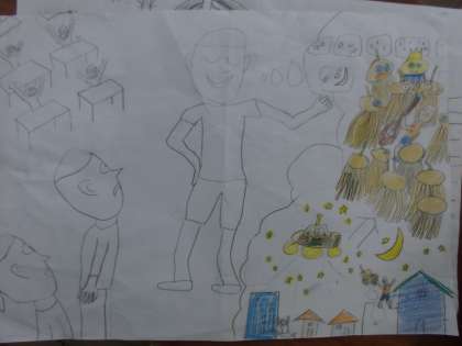宿題を忘れた理由を登場人物がおもしろおかしく楽しく話します。