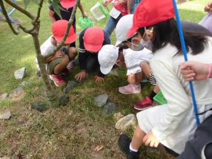 虫取り網を友達と交代で使いながら,虫を探しました。
